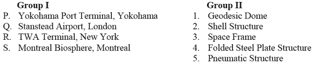 Match the buildings in Group I with their corresponding structural feature in Group II