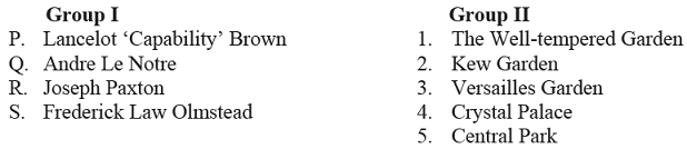 Match the landscape designers listed under Group I with their appropriate contribution from Group II