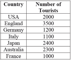 Following table gives data on tourists from different countries visiting India in the year 2011.