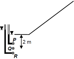 Steady state seepage is taking place through a soil element at Q, 2 m below the ground surface immediately downstream of the toe of an earthen dam as shown in the sketch. The water level in a piezometer installed at P, 500 mm above Q, is at the ground surface. The water level in a piezometer installed at R, 500 mm below Q, is 100 mm above the ground surface. The bulk saturated unit weight of the soil is 18 kN/m3 and the unit weight of water is 9.81 kN/m3. The vertical effective stress (in kPa) at Q is