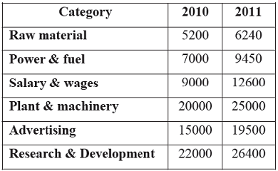 Following table provides figures (in rupees) on annual expenditure of a firm for two years - 2010 and 2011.