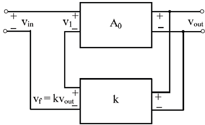 In a voltage-voltage feedback as shown below, which one of the following statements is TRUE if the gain k is increased?