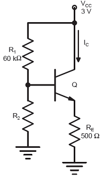 In the circuit shown below, the silicon npn transistor Q has a very high value of β . The required value of R2 in kΩ to produce IC = 1 mA is