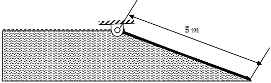 A hinged gate of length 5 m, inclined at 30° with the horizontal and with water mass on its left, is shown in the figure below. Density of water is 1000 kg/m3. The minimum mass of the gate in kg per unit width (perpendicular to the plane of paper), required to keep it closed is