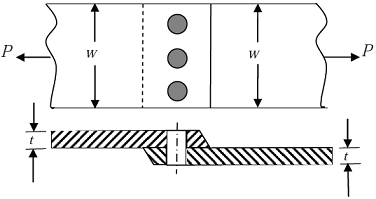 A single riveted lap joint of two similar plates as shown in the figure below has the following geometrical and material details.