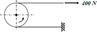 A force of 400 N is applied to the brake drum of 0.5 m diameter in a band-brake system as shown in the figure, where the wrapping angle is 180°. If the coefficient of friction between the drum and the band is 0.25, the braking torque applied, in N.m is