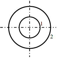 Consider two infinitely long thin concentric tubes of circular cross section as shown in the figure. If D1 and D2 are the diameters of the inner and outer tubes respectively, then the view factor F22 is given by