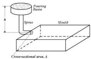 A mould having dimensions 100 mm × 90 mm × 20 mm is filled with molten metal through a gate as shown in the figure. For height h and cross-sectional area A, the mould filling time is t1. The height is now quadrupled and the cross-sectional area is halved. The corresponding filling time is t2. The ratio t2/t1 is