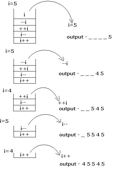 printf("%d%d%d%d%d", i++, i--, ++i, --i, i);