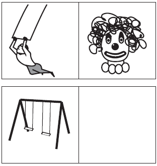 A trapeze performer is to a clown as swings are to a sliding board. This relationship shows a classification. Trapeze performers and clowns are found at circuses; swings and sliding boards are found on playgrounds.