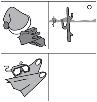 Hat and mittens are to desert as snorkel and flippers are to snow. This relationship shows an opposition. The hat and mittens are NOT worn in the desert; the snorkel and flippers are NOT worn in the snow.