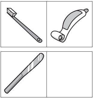 Toothbrush is to toothpaste as butter knife is to butter. This relationship shows function. The toothbrush is used to apply the toothpaste to teeth; the knife is used to apply butter to bread.