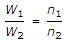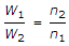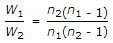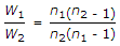 In n1 and n2 are the indices of compression for the first and second stage of compression, then the ratio of workdone on the first and second stages (W1/W2) with perfect intercoooing is given by