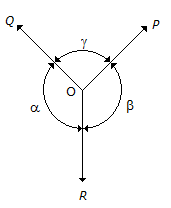 \(\frac { P } { sin\gamma} = \frac { Q } { sin\alpha } = \frac { R } { sin\beta}\)