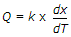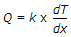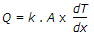 6. Fourier's law of heat conduction is (where Q = Amount of heat flow through the body in unit time, A = Surface area of heat flow, taken at right angles to the direction of heat flow, dT = Temperature difference on the two faces of the body, dx = Thickness of the body, through which the heat flows, taken along the direction of heat flow, and k = Thermal conductivity of the body)