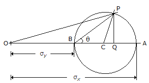 3. The radius of the Mohr 's circle in the given figure is equal to