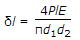 5. The extension of a circular bar tapering uniformly from diameter d1 at one end to diameter d2 at the other end, and subjected to an axial pull of P is given by