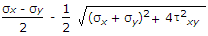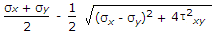 10. When a body is subjected to bi-axial stress i.e. direct stresses (σx) and (σy) in two mutually perpendicular planes accompanied by a simple shear stress (τxy), then minimum normal stress is