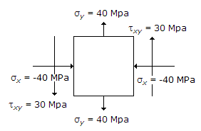 The state of stress at a point in a loaded member is shown in the below figure. The magnitude of maximum shear stress is