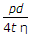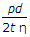 The hoop stress in a riveted cylindrical shell of diameter (d), thickness (t) and subjected to an internal pressure (p) is (where η = Efficiency of the riveted joint)