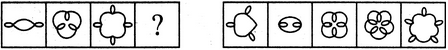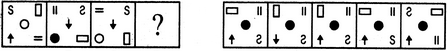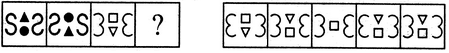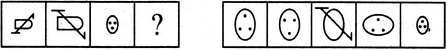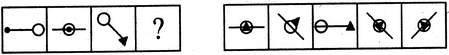 The 'S'-shaped element gets laterally inverted; the rectangle rotates through 90o, the '=' symbol rotates through 90o; the arrow gets vertically inverted and the circle gets shaded.