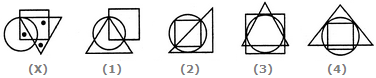 From amongst the figures marked (1), (2), (3) and (4), select the figure which satisfies the same conditions of placement of the dots as in figure (X).