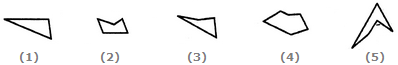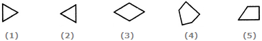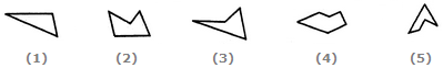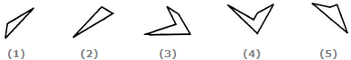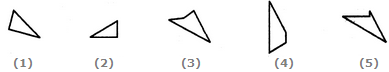Select the alternative which represents three out of the five alternative figures which when fitted into each other would form a equilateral triangle.