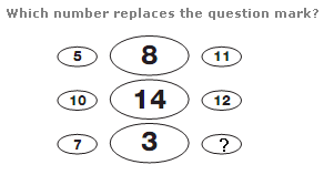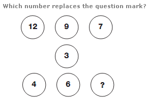 Starting with the numbers in the top row, and following straight lines through the centre of the diagram, subtract 3 from the number and put the result in the corresponding lower circle.