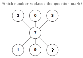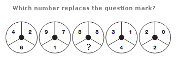 Numbers in segments of the central circle equal the difference between the sum of the numbers in corresponding segments of the left two and right two circles.