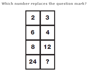 Starting with the top left number, and working down one row at a time, alternating between left and right, double the number each time. Repeat this sequence, starting with the top right number.