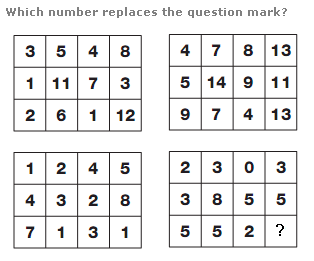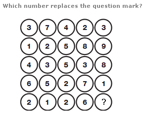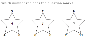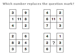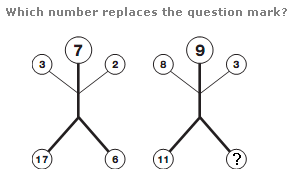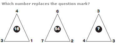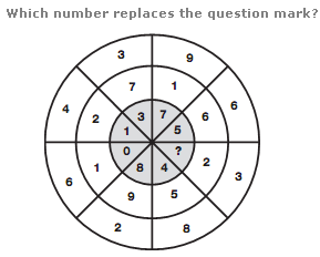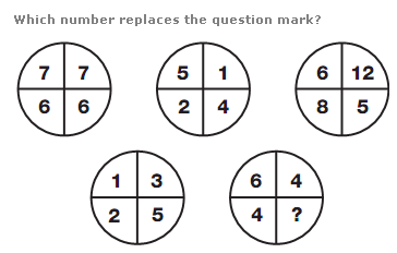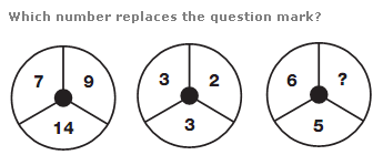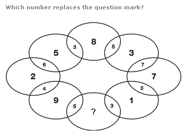 Using the numbers in the segments of the lower two circles, the numbers in the upper left circle equal the sum of the numbers in corresponding segments of the lower 2 circles, the numbers in the upper central circle equal the difference between numbers in corresponding segments of the lower 2 circles, and the numbers in the upper right circle equal the product of the numbers in corresponding segments of the lower 2 circles. |