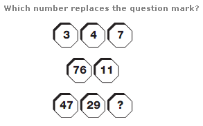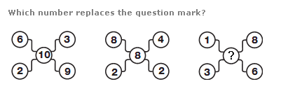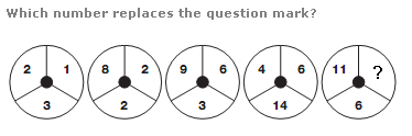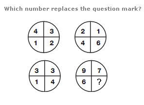Add together numbers in corresponding segments of the upper two and lower left circles to give the values in corresponding segments of the lower right circle.