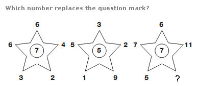 For each star, add the outer numbers together and divide by 3 for the left hand, 4 for the centre, and 5 for the right hand, putting the result in the centre.