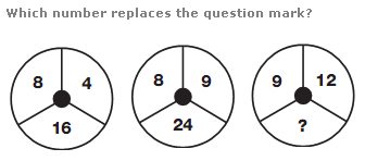 In each circle, multiply the top two numbers together, and divide by 2 for the left hand circle, 3 for the centre, and 4 for the right hand circle, putting the result in the lower segment.
