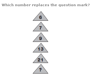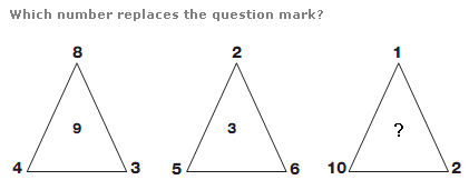 Start at the top of each triangle and move clockwise around its points. Add the first two numbers together and subtract 2 to give the next value round.