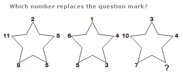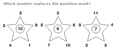 In each star, the number in the centre equals the difference between the sum of the even numbers and the sum of the odd numbers around the points of the star.