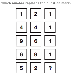 Working from top to bottom, and reading each row as a 3 digit number, rows are arranged in order of the Square Numbers, from 11 to 15, with the digits reversed in each case.
