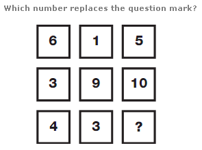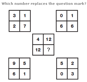 Calculate the sum of the numbers in corresponding positions of the outer 4 squares, subtract 5 form this result, and put it in the corresponding position of the middle square, 1/4 turn anticlockwise from the original.