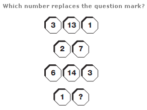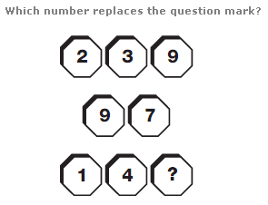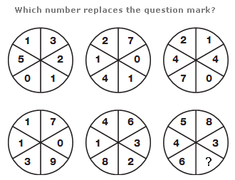 Starting with the left hand circle, add 4 to each number and rotate their positions 1 place clockwise to give the values in the upper right hand circle, then add 5 to each of these values and rotate their positions 1 place clockwise to give the values in the lower right hand circle.