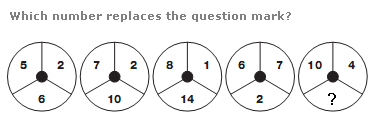 Starting with the circle on the top left, and moving to the right, top row then bottom row, the sum of the numbers in each circle follows the sequence 12, 15, 18, 21 etc.