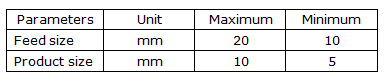 energy (kWh/ton of feed) needed to crush small feed to such a size that 80% of the product passes a 200 mesh screen.